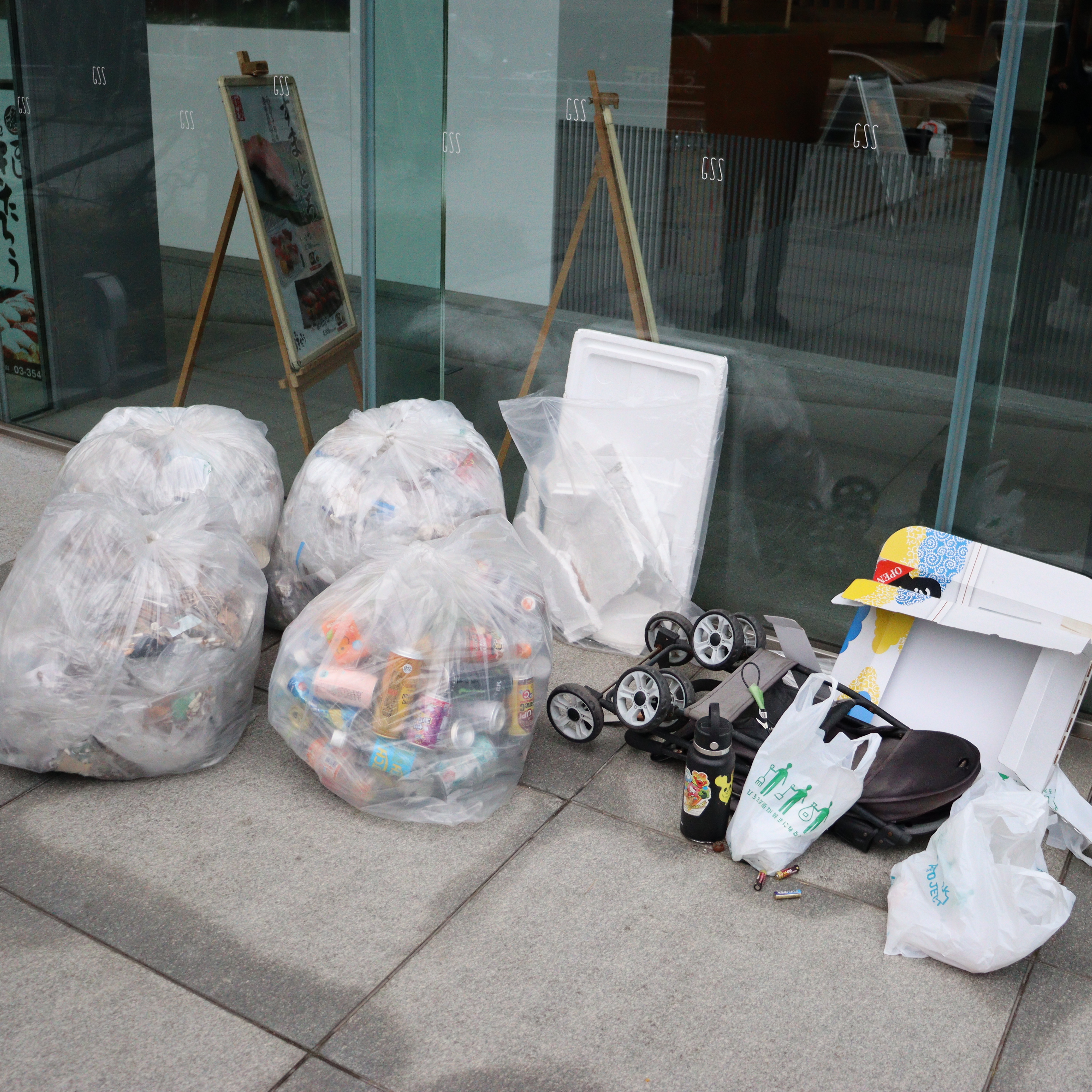 今回の活動では普通ゴミ13.75kg、缶・瓶・ペットボトル4.45kg、特殊ゴミ7.25kg、段ボール0.45kg、計25.9kgのゴミを清掃いたしました!