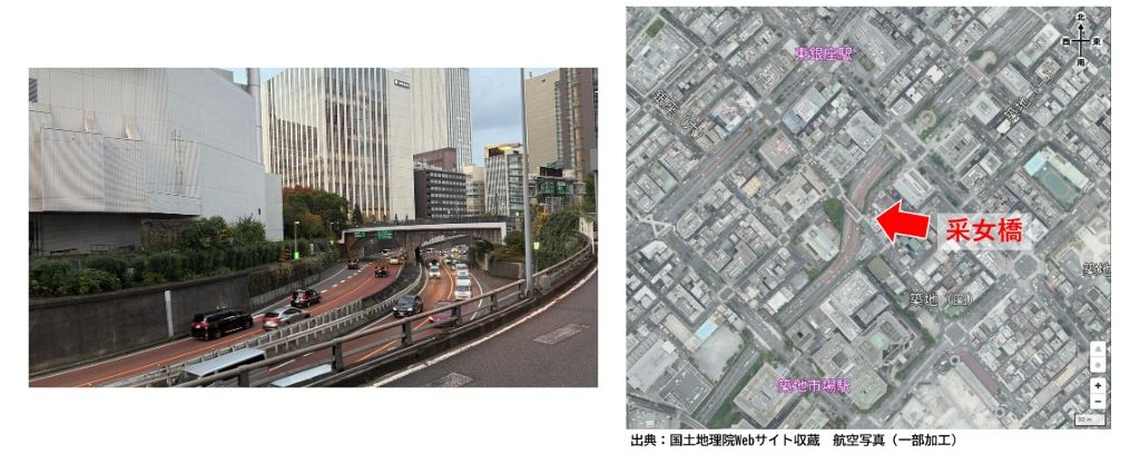 突然ですが問題です!東銀座を通っている首都高速都心環状線の采女橋(うねめばし)付近はS字になっています。なぜこのような形になっているのでしょうか?